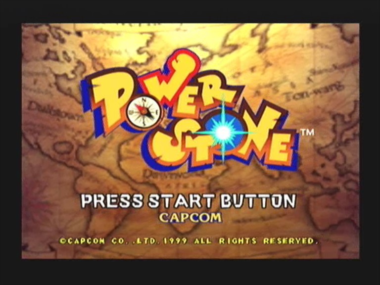POWER STONE is a fully 3D arena fighting game produced by Capcom.Power Stone was initially released on the Sega NAOMI hardware and later ported to the Dreamcast.The game features 10 selectable characters.Gameplay involves selecting a character and then proceeding to battle the other characters in various stages.The fighting is three dimensional and includes the ability to use special attacks as well as pick up and fight with such objects as tables,chairs,rocks and bombs.During battle,"Power Stones" which are resembling gems of different colors appear in the arena.If a character collects three Power Stones,he transforms into a more powerful version of himself...