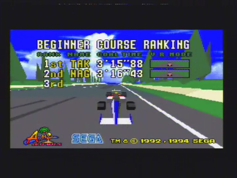 VIRTUA RACING is originally a Formula 1 racing arcade game developed by Sega-AM2.It is one of the first driving games to use fully polygonal characters and environments.The Sega Virtua Processor on an extra chip was created to enable a version on the Sega Genesis/Sega Mega Drive.Virtua Racing has three levels,designated into difficulties.Beginner is "Big Forest",intermediate is "Bay Bridge" and expert is "Acropolis".Each level has its own special feature,for example the amusement park in "Big Forest" or the "Bay Bridge" itself or the tight hairpin of "Acropolis".Virtua Racing also introduced the "V.R. View System" by allowing the player to choose one of four views to play the game...